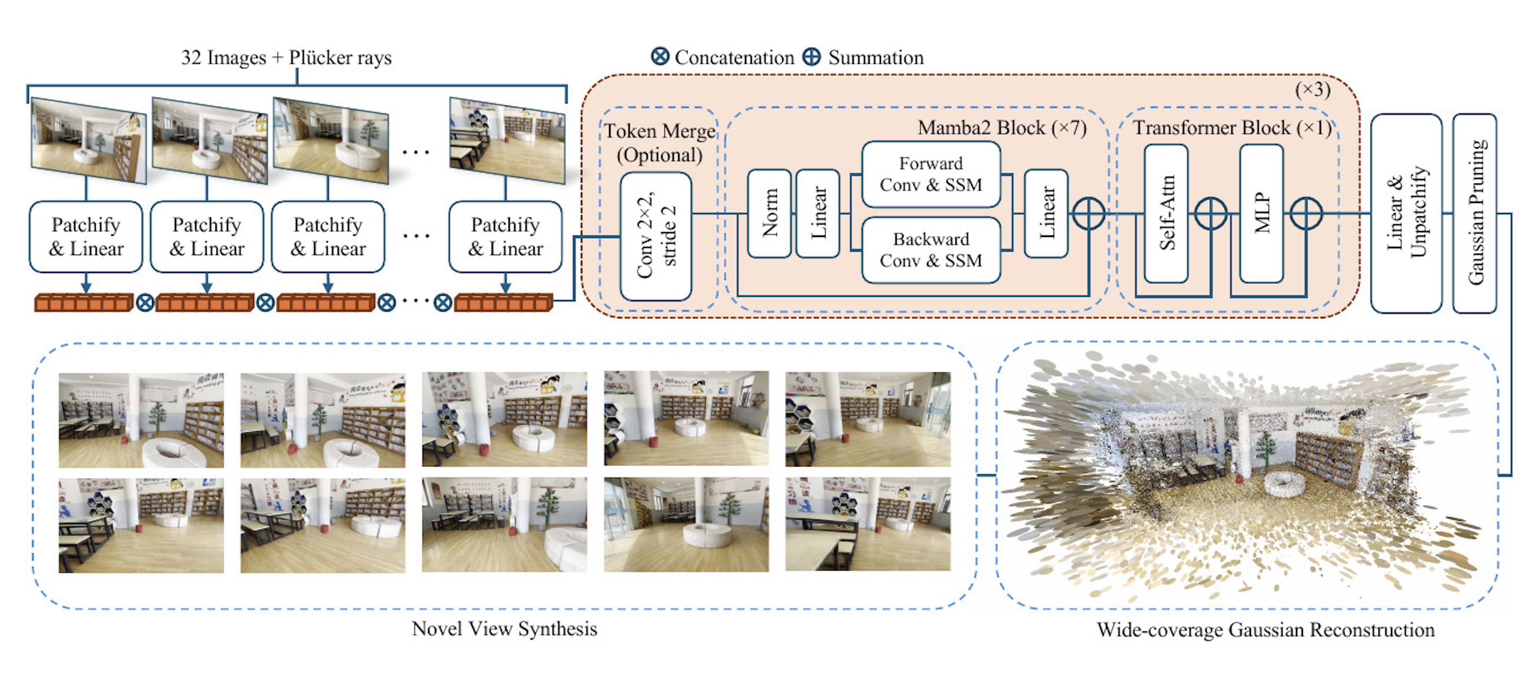 We propose Long-LRM, a feed-forward 3D Gaussian reconstruction model for instant, high-resolution, 360° wide-coverage, scene-level reconstruction. Specifically, it takes in 32 input images at a resolution of 960×540 and produces the Gaussian reconstruction in just 1 second on a single A100 GPU. To handle the long sequence of 250K tokens brought by the large input size, Long-LRM features a mixture of the recent Mamba2 blocks and the classical transformer blocks, enhanced by a light-weight token merging module and Gaussian pruning steps that balance between quality and efficiency. We evaluate Long-LRM on the large-scale DL3DV benchmark and Tanks&Temples, demonstrating reconstruction quality comparable to the optimization-based methods while achieving an 800× speedup w.r.t. the optimization-based approaches and an input size at least 60× larger than the previous feed-forward approaches. We conduct extensive ablation studies on our model design choices for both rendering quality and computation efficiency. We also explore Long-LRM's compatibility with other Gaussian variants such as 2D GS, which enhances Long-LRM's ability in geometry reconstruction.